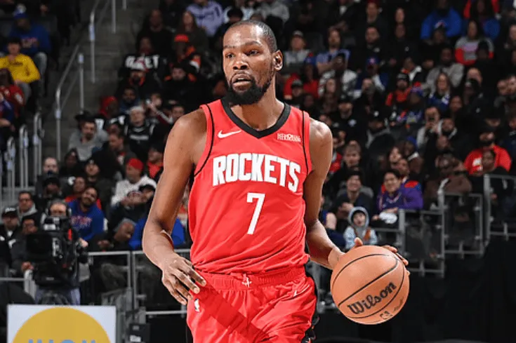 本场比赛,火箭球员凯文-杜兰特出战40分钟,19投11中,其中三分球11投5中,罚球6投5中,得到32分7篮板3助攻1抢断1封盖。