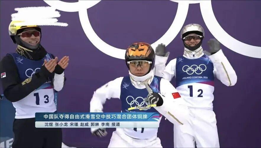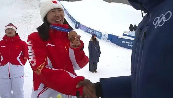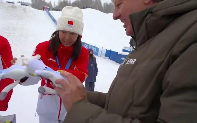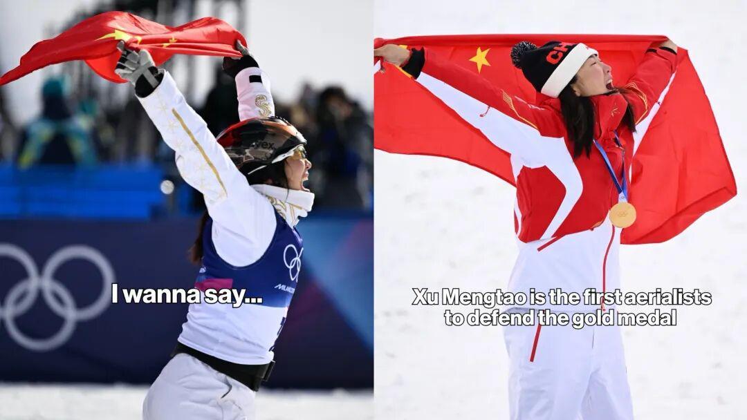 她说:“恭喜你徐梦桃,你是自由式滑雪空中技巧历史上第一个卫冕冬奥会冠军!”